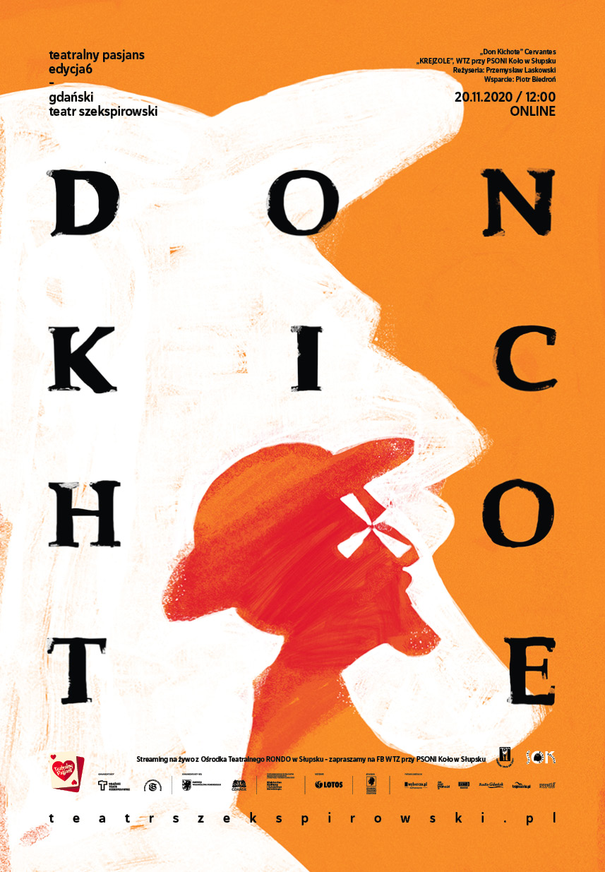 Tych wszystkich, którzy otrzymali zaproszenia na premierę „ Don Kichote- wariacja do cna zielona” serdecznie przepraszamy, ale z przyczyn epidemiczno- sanitarnych możecie Państwo uczestniczyć w premierze jedynie on- line. Dzięki uprzejmości dyrektorki SOK Jolanty Krawczykiewicz i kierowniczki OT Rondo Aleksandry Karnickiej nasz premierowy pokaz będzie transmitowany na żywo na facebookowej stronie PSONI Koło w Słupsku. A zatem raz jeszcze serdecznie przepraszamy i zapraszamy do wirtualnego teatru. Zaczynamy 20 listopada o godzinie 12.00. Trzymajcie za nas kciuki- Krejzole.